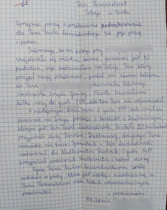 Na ręce Komendanta Powiatowego Policji w Nisku wpłynęły serdeczne podziękowania za okazaną życzliwość i pomoc, jaką otrzymała mieszkanka Niska od dzielnicowego asp. Pawła Lewandowskiego. Podziękowania są dla policjantów najwyższym wyrazem uznania dla ich codziennego trudu.