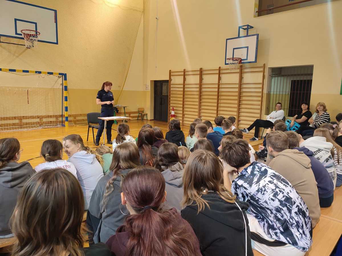 Edukacja o bezpieczeństwie to bardzo ważne zadanie stojące przed policją, które realizowane jest wśród młodzieży i dzieci od najmłodszych lat. W związku z tym w Szkole Podstawowej w Domostawie zostało zorganizowane spotkanie edukacyjno - profilaktyczne, które ma na celu poszerzyć świadomość i wiedzę w zakresie bezpieczeństwa. Oprócz tego, wyjaśnione zostały kwestie związane z odpowiedzialnością prawną nieletnich.