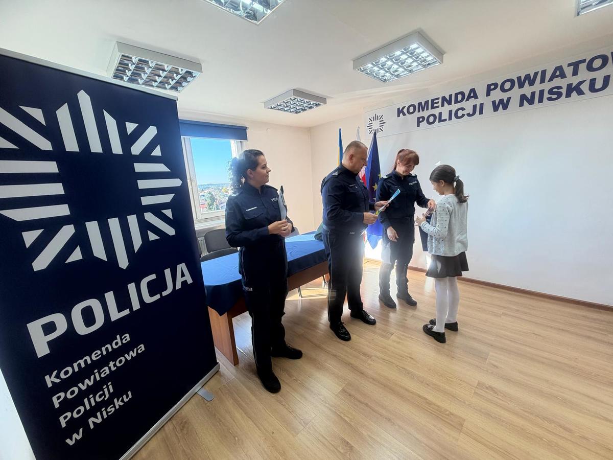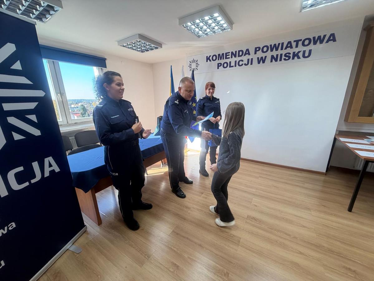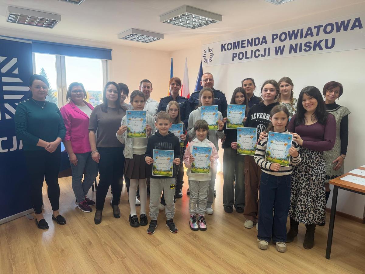 Nagrody dla laureatów zostały ufundowane przez Starostwo Powiatowe w Nisku, Gminę Nisko oraz Gminę Rudnik nad Sanem. Komendant Powiatowy Policji w Nisku mł. insp. Artur Wasiuta podczas przemówienia zaprosił laureatów wraz z opiekunami na zwiedzanie komendy, zapoznanie się ze sprzętem wykorzystywanym podczas pełnienia służby przez policjantów oraz flotom radiowozów, którymi dysponuje Komenda Powiatowa Policji w Nisku. Następnie Komendant pogratulował zwyciężcom, wręczył nagrody i pamiątkowe dyplomy.