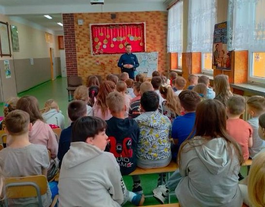 Nie zabrakło również tematów związanych z zagrożeniami wynikającymi z kontaktów z osobami nieznajomymi oraz niebezpieczeństw, jakie mogą czyhać na dzieci i młodzież w Internecie. Dzielnicowy uczulał uczniów na konieczność ostrożnego korzystania z sieci oraz reagowania w sytuacjach budzących niepokój.