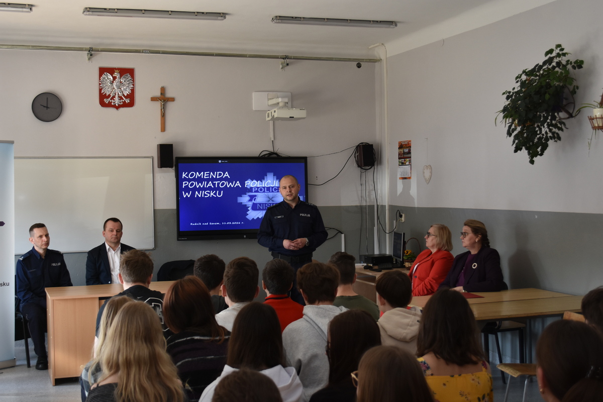 W Publicznej Szkole Podstawowej nr 1 im. Jana Pawła II w Rudniku Nad Sanem, policjanci Komendy Powiatowej Policji w Nisku zorganizowali debatę społeczną mającą na celu zwiększenie świadomości dzieci, młodzieży, ale także nauczycieli i wychowawców, na temat różnych form zagrożeń którymi posługują się przestępcy w życiu codziennym jak również w sieci.